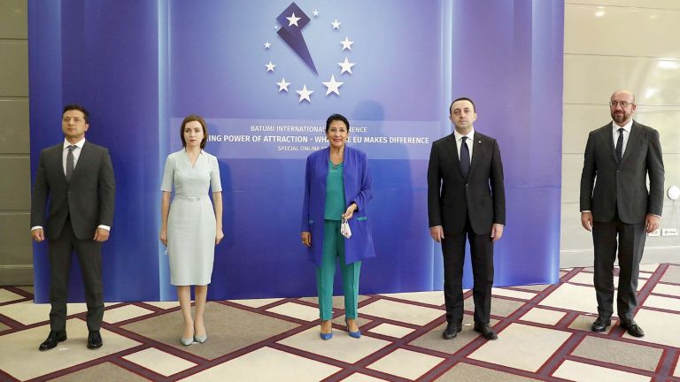 Лидерите на Грузия, Молдова и Украйна се събраха вчера в Кавказ на среща с председателя на Европейския съвет Шарл Мишел, който определи събитието като „ключов етап“ в сътрудничеството помежду им, предаде Франс прес. Тези три бивши съветски републики, които искат да се откъснат от сферата на влияние на Москва, създадоха през май дипломатически формат –…