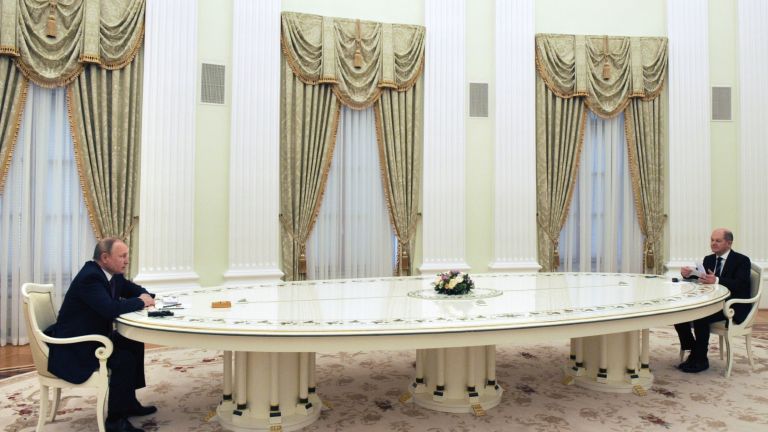 По време на редицата срещи на Владимир Путин в Кремъл, посветени на напрежението около Украйна, една бяла дълга маса привлече световното внимание. На нея седнаха и Еманюел Макрон, и Олаф Шолц. Масата се оказа италианско производство, дело на малка семейна фирма, която е доставила още дузина подобни маси в други зали на Кремъл, предаде Ройтерс,…